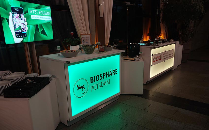 Dieses Mal haben wir unsere Weihnachtsfeier wieder gemeinsam mit den Kolleginnen und Kollegen von Garten Direkt in einer besonderen Location gefeiert. Die Biosphäre in Potsdam hat uns einen unvergesslichen Abend beschert. Wie schon so oft für unsere Events haben wir uns am S-Bahnhof Mahlow getroffen, um mit den Öffentlichen bequem zum Ziel zu kommen und getreu dem Motto der Weg ist das Ziel haben wir gleich schon ein bisschen losgefeiert und die weihnachtlich geschmückten Städte Berlin und Potsdam genossen.
