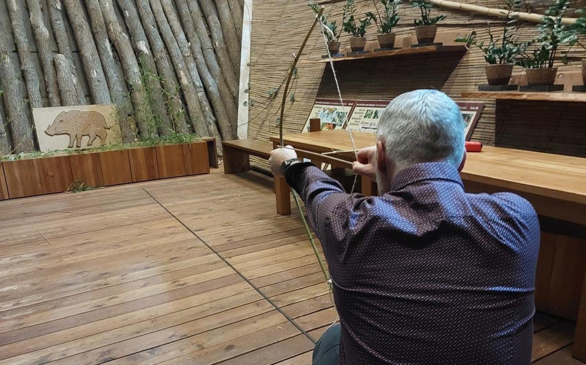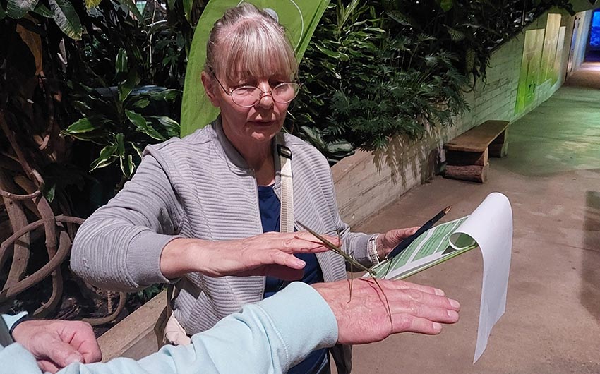 Nach dem alle Teilnehmer in Potsdam versammelt waren ging es nach einem Gruppenfoto zum Glüchweinempfang. Hier wurde das Abendprogramm vorgestellt und unsere bunte Truppe in Teams für eine Dschungelrally aufgeteilt. Anschließend ging es kreuz und quer durch die Tropenhalle und die Unterwasserwelt zu verschiedenen Stationen, an denen Fragen beantwortet, Dinge gesucht, lustige Fotos gemacht, handwerkliche Fähigkeiten unter Beweis gestellt werden mussten und Mutproben zu absolvieren waren. Einen Bogen selbst bauen und auf ein Ziel Pfeile schießen gehörte ebenso dazu wie der Kontakt mit Riesenheuschrecken oder gar das Essen von gerösteten Insekten. Eine Kokosnuss mit dem Messer öffnen und den Saft in der Gruppe zum Trinken verteilen, ohne alles zu verkleckern gehörte zu den Highlights.